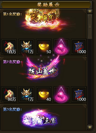 竞技结束可获得勇士点数和无双争霸积分奖励,勇士点数排名前列的话,可以在排行榜中获得相应的称号,第一名可以获得“天下无双”称号和大量奖励,获取的无双争霸积分奖励,则可在积分商店换取道具物品。