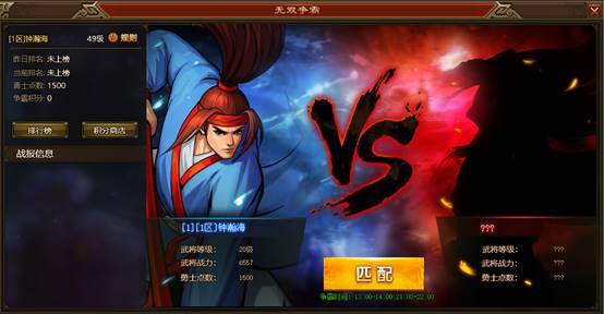 参与方式:玩家在活动时间内点击无双争霸的图标,即可打开无双争霸匹配界面进行参与。